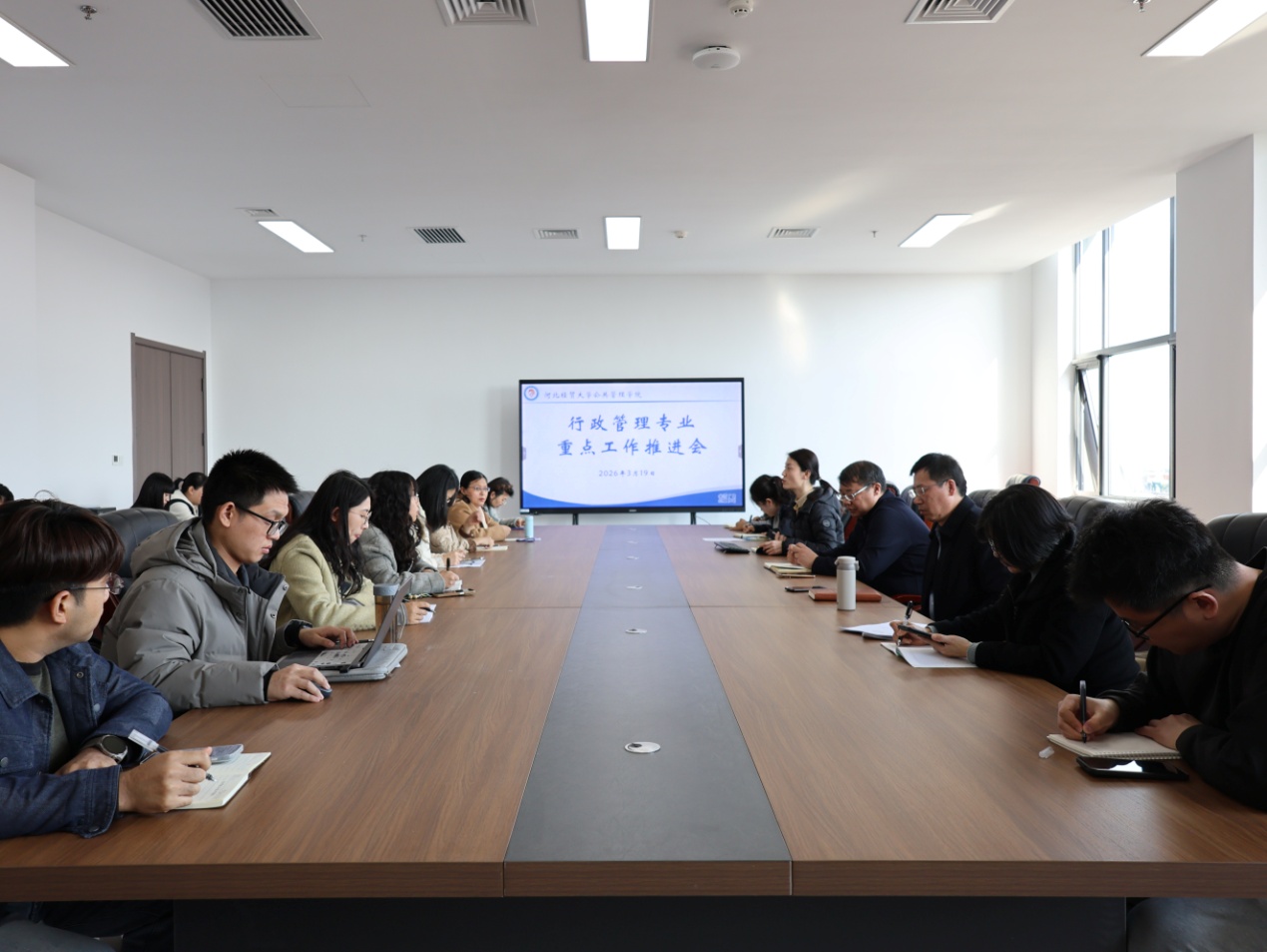 2026届毕业生去向落实情况进行汇报,全院树立“大就业观”,形成全过程促就业的合力,促进毕业生高质量充分就业;副院长孙茜重点介绍了青年教师培养方案,通过“老带新”结对子,建立“一人一档”等形式,助推青年教师快速成长;行政管理系主任宋惠敏聚焦新财经教育综合改革2.0建设要求,对专业培养方案修订、微专业申报等工作进展进行汇报。
