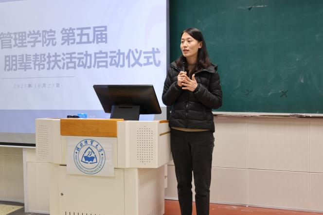 品牌项目的重要意义。她指出,该活动既契合公共管理专业的就业需求,也是联结各年级、传承“积极踏实”院风的重要平台。她强调帮扶者需“重在落实,贵在实效”,将关怀落到实处;被帮扶者要珍惜机会,在学长学姐引领下尽快适应大学生活,同时鼓励同学们向党组织靠拢,以成果为导向践行担当,实现共同进步,达成“1+1+1>3”的育人效果。